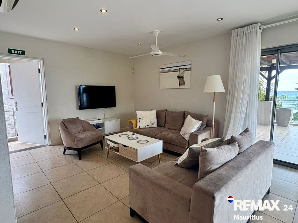 Set atop a prestigious beachfront residence in the heart of Trou aux Biches, this elegant 3-bedroom penthouse captures the very best of island living. Designed for those who appreciate both modern comfort and coastal luxury, it offers sweeping Indian Ocean views from the main living areas, kitchen, and two bedrooms.