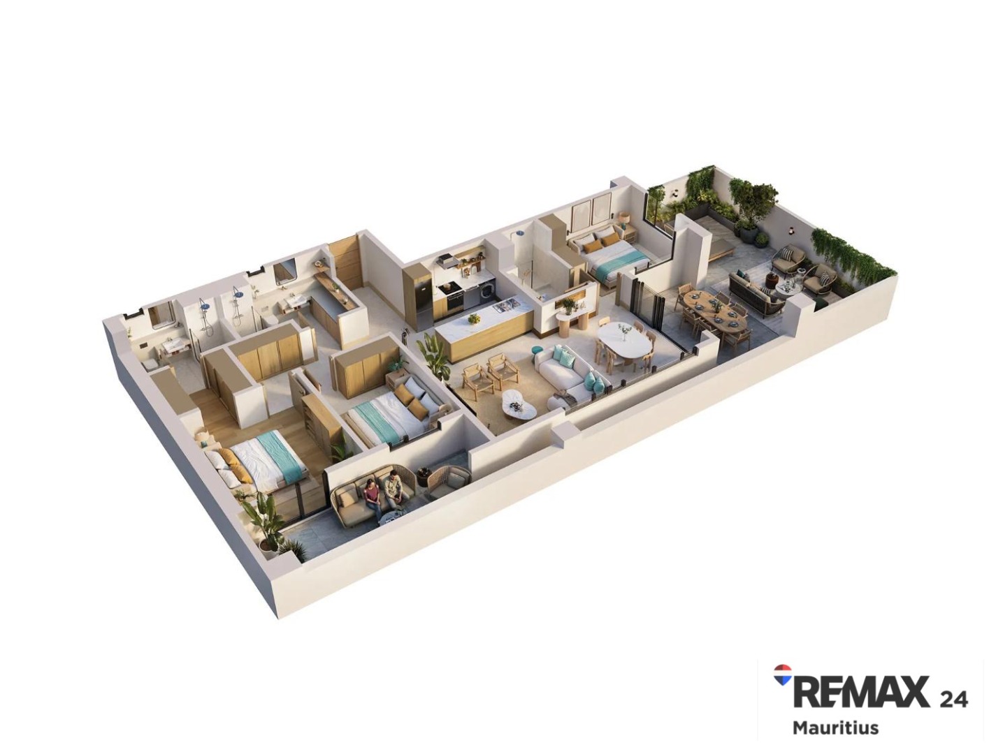 Discover this elegant three-bedroom apartment located in a brand-new development within the highly sought-after La Croisette Grand Baie with a total surface area of 198 sqm, this modern property offers a bright living space, three bathroom, and a dedicated parking space.