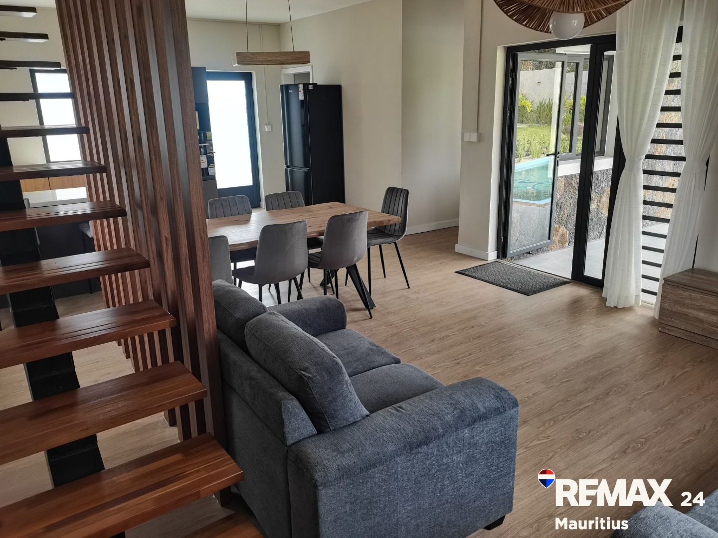 Discover the charm of coastal living in this modern 3-bedroom, 2-bathroom double-storey villa in Calodyne, just minutes from the public beaches and vibrant Grand Baie. With 180m² of living space on a 380m² plot, this fully furnished home offers a private yard enclosed with Invisi-Fence, a lockable gate, and secure perimeter electric fencing.