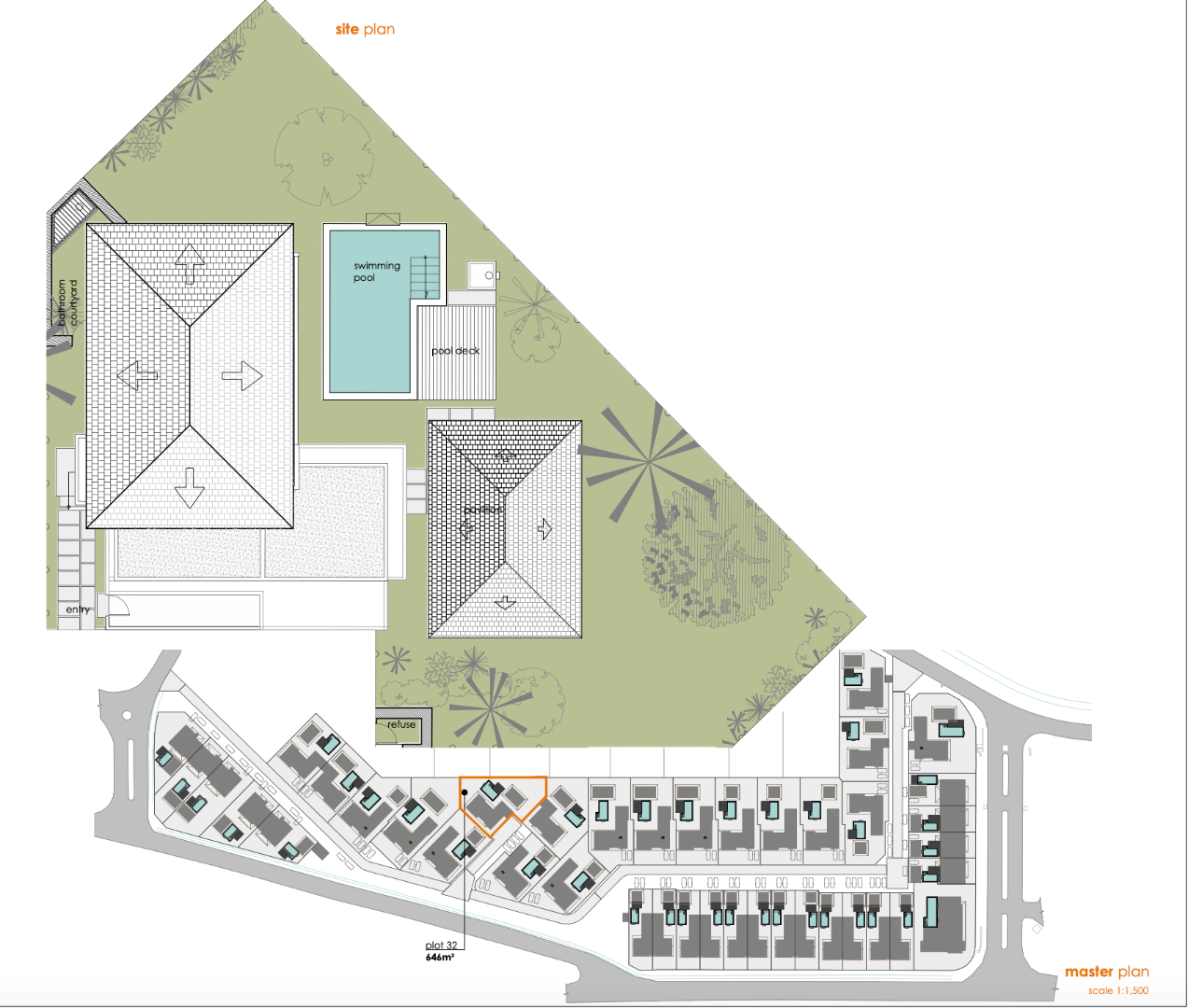 Welcome to this Deluxe Villa, nestled within the prestigious Marguery Villas resort, offering an unparalleled vacation getaway for its residents. With master suite on the ground floor opening onto the tropical garden, a master bathroom featuring a walk-in closet and private outdoor tropical shower, and two beautiful en-suite bedrooms on the first floor, this villa embodies a perfect fusion of comfort and luxury. Oversized windows allow natural light to flood spacious open-plan kitchen, living, and dining area, and frame views of the tranquil garden and poolside, seamlessly blending indoor and outdoor living. Spanning a total living area of 224 sq.m, on a plot of 646 sq.m, the villa includes a gazebo with outdoor lounge, lush garden, and large swimming pool of 34 m².