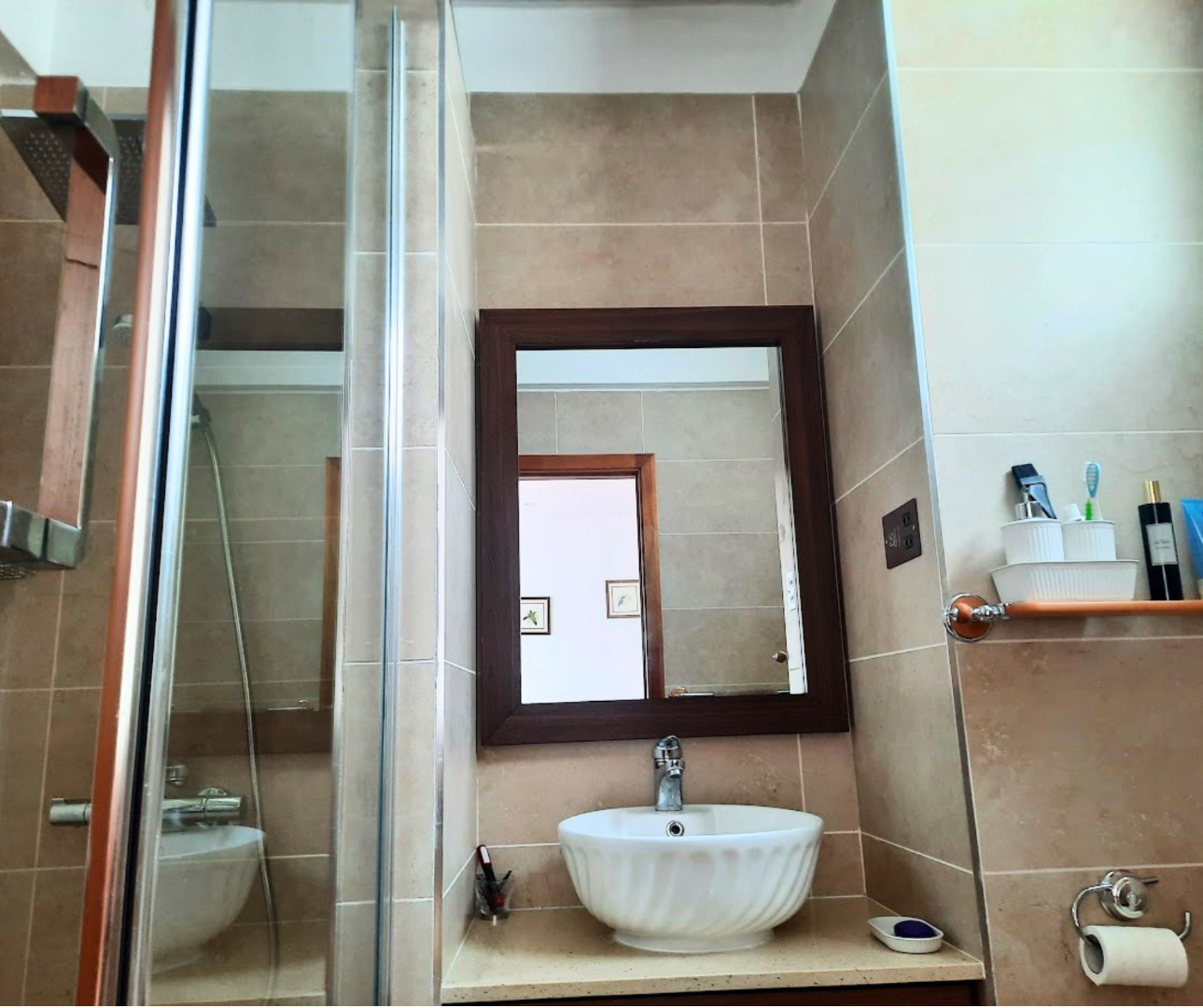 Each of the three comfortable bedrooms features built-in wooden wardrobes, offering generous storage, and benefits from abundant natural light. The modern bathrooms are designed with cohesive light brown tiling, vessel sinks, floating vanities, and wall-mounted toilets. Additional practical amenities include a separate laundry area, a private balcony, and the added versatility of a flatlet, perfect for guests or extended family.