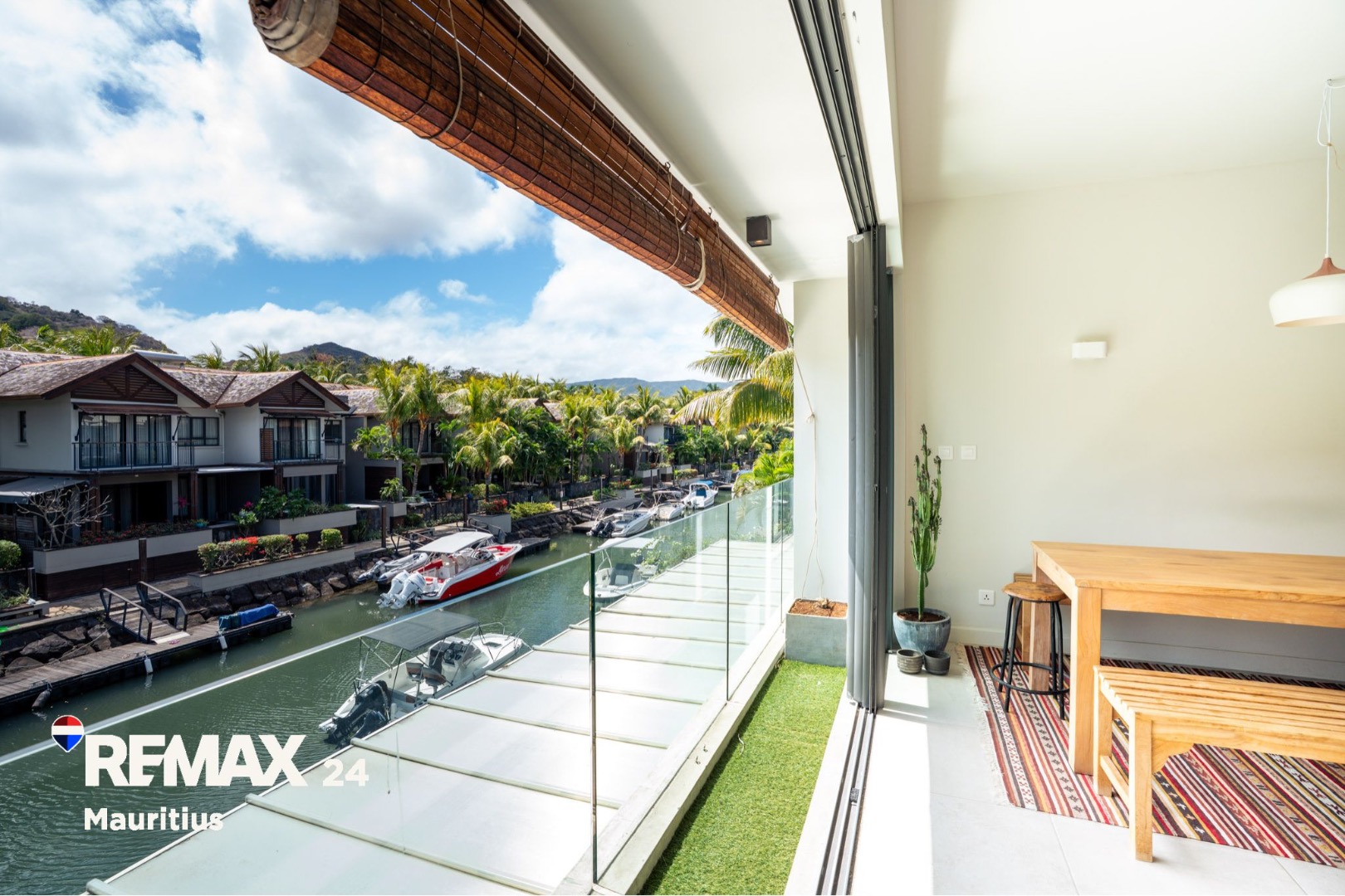 Discover this stunning apartment available for long-term rent in a sought-after residential marina, one of Mauritius' most exclusive addresses on the West Coast. Spanning 108 m², this contemporary waterfront residence offers breathtaking views of La Tourelle Mountain and the canal.